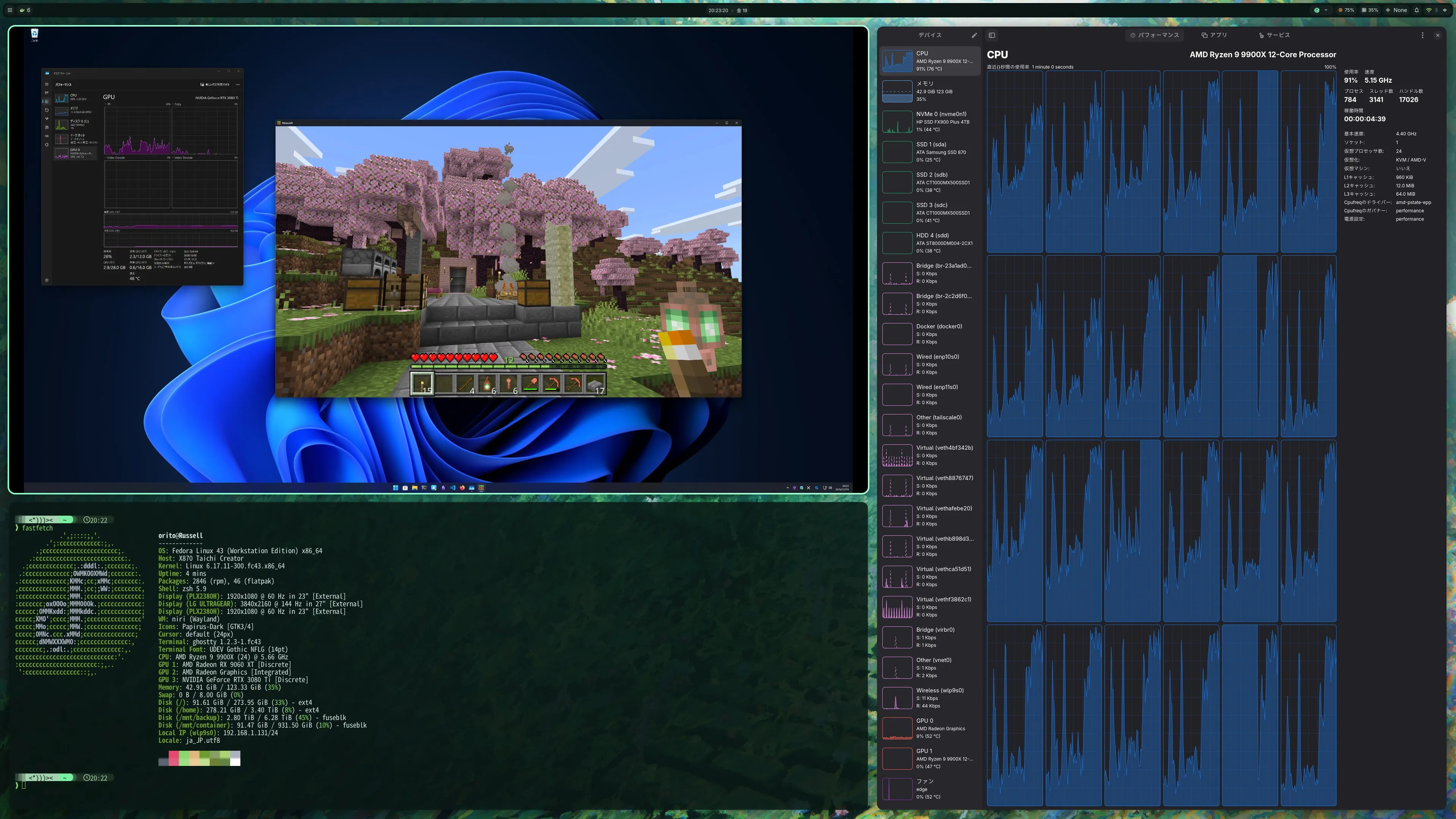 普段使いにおいても Linux の Fedora を使いつつ、必要に応じて Windows の VM 上のソフトウェアを Linux の上から使えて、しかも GPU も使えるので性能的にも問題ないというのは非常に便利です。